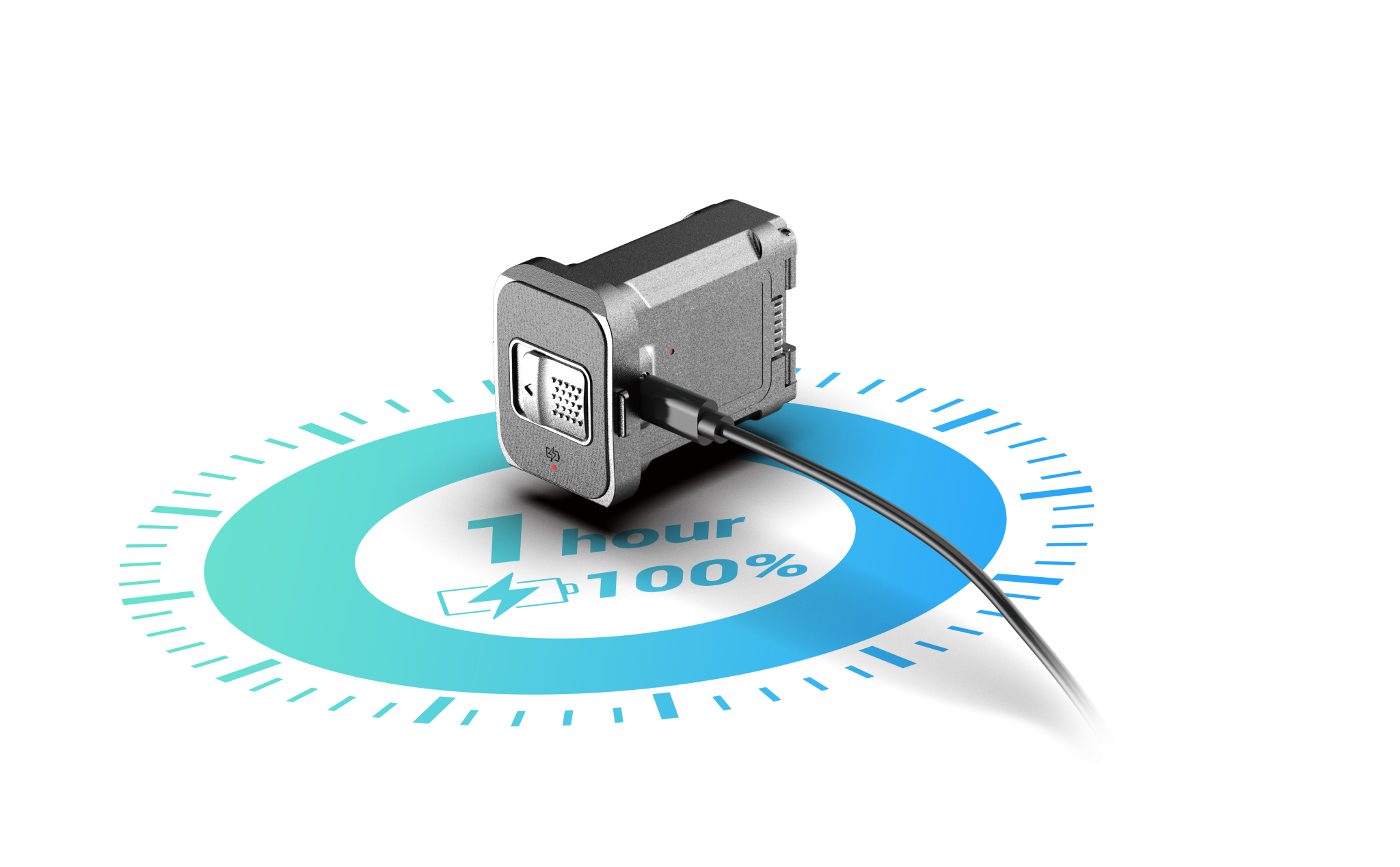 Für eine lange Einsatzdauer sorgen zwei auswechselbare 18500-Akkus, die bis zu 7 Stunden Laufzeit ermöglichen. Über die Schnellladefunktion ist der Akku innerhalb einer Stunde wieder vollständig geladen. Praktisch: Das Gerät funktioniert auch mit nur einem eingesetzten Akku zuverlässig.