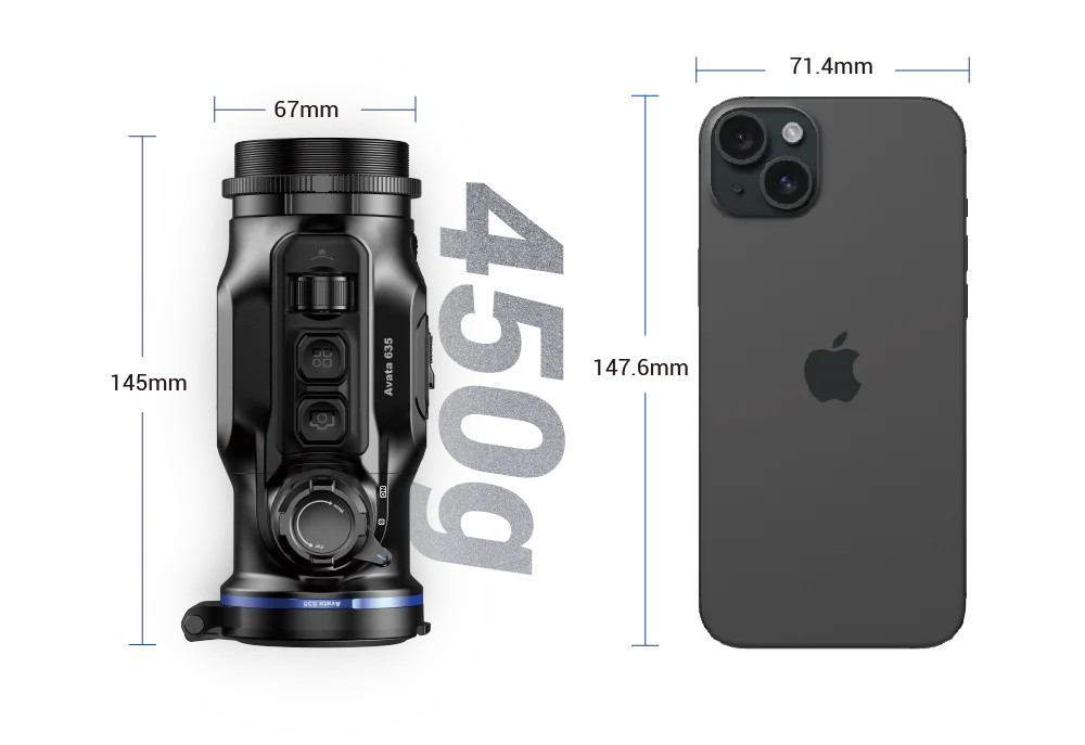 Mit einem 12 μm VOx-Sensor und einem NETD-Wert von unter 15 mK liefert das AVATA 635 glasklare Bilder selbst bei schwierigen Bedingungen wie Nebel oder Regen. Jäger profitieren von: