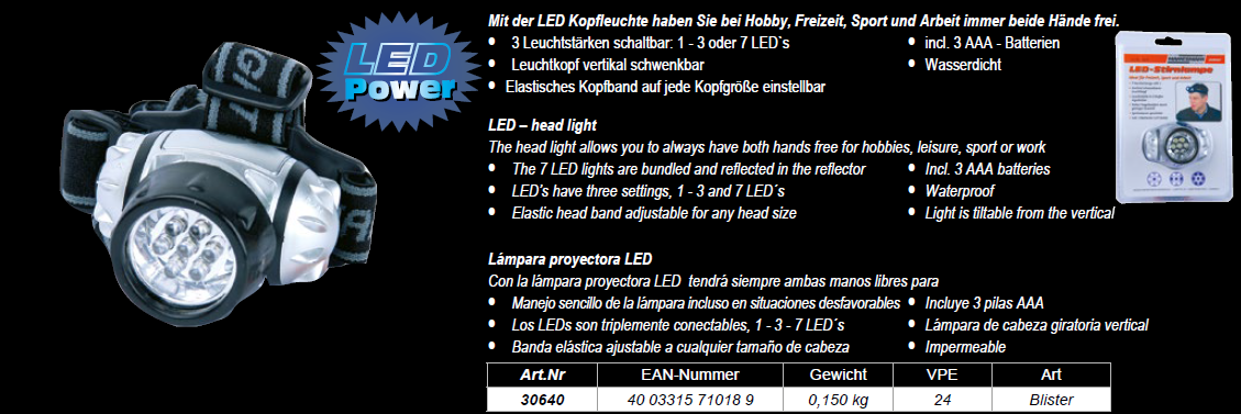 Produktinformationen "LED - Stirnlampe"
