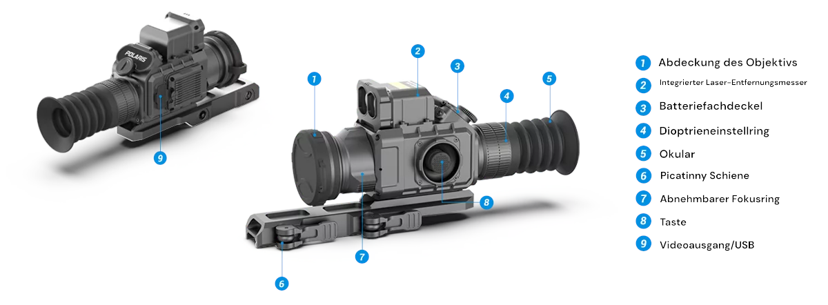 Wenn du die Version mit integriertem Laser-Entfernungsmesser suchst, findest du sie hier: Polaris 650 RL Wärmebild-Zielfernrohr (mit LRF).