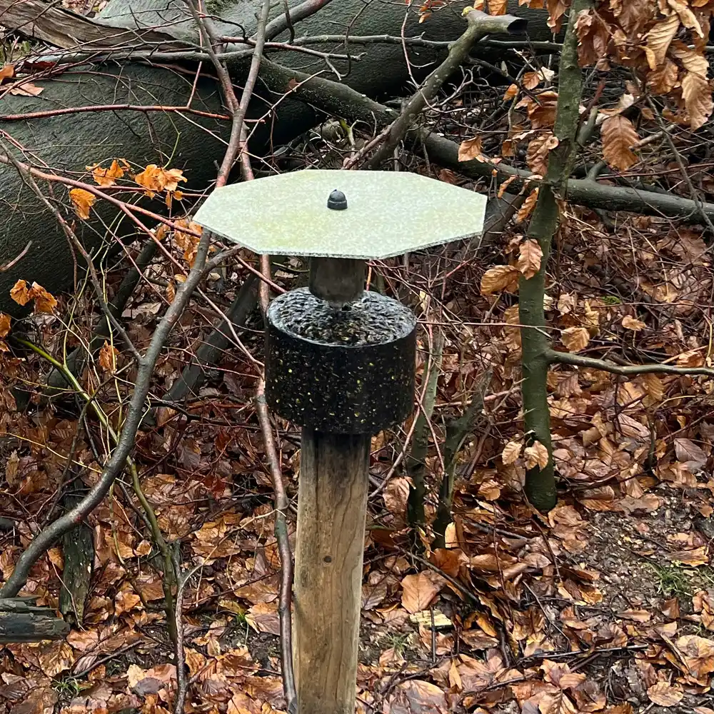 • Einfache Montage: Flexible Befestigung an Baum, Pfahl oder Baumstumpf – auch mit Überdachung zum Schutz vor Regen.